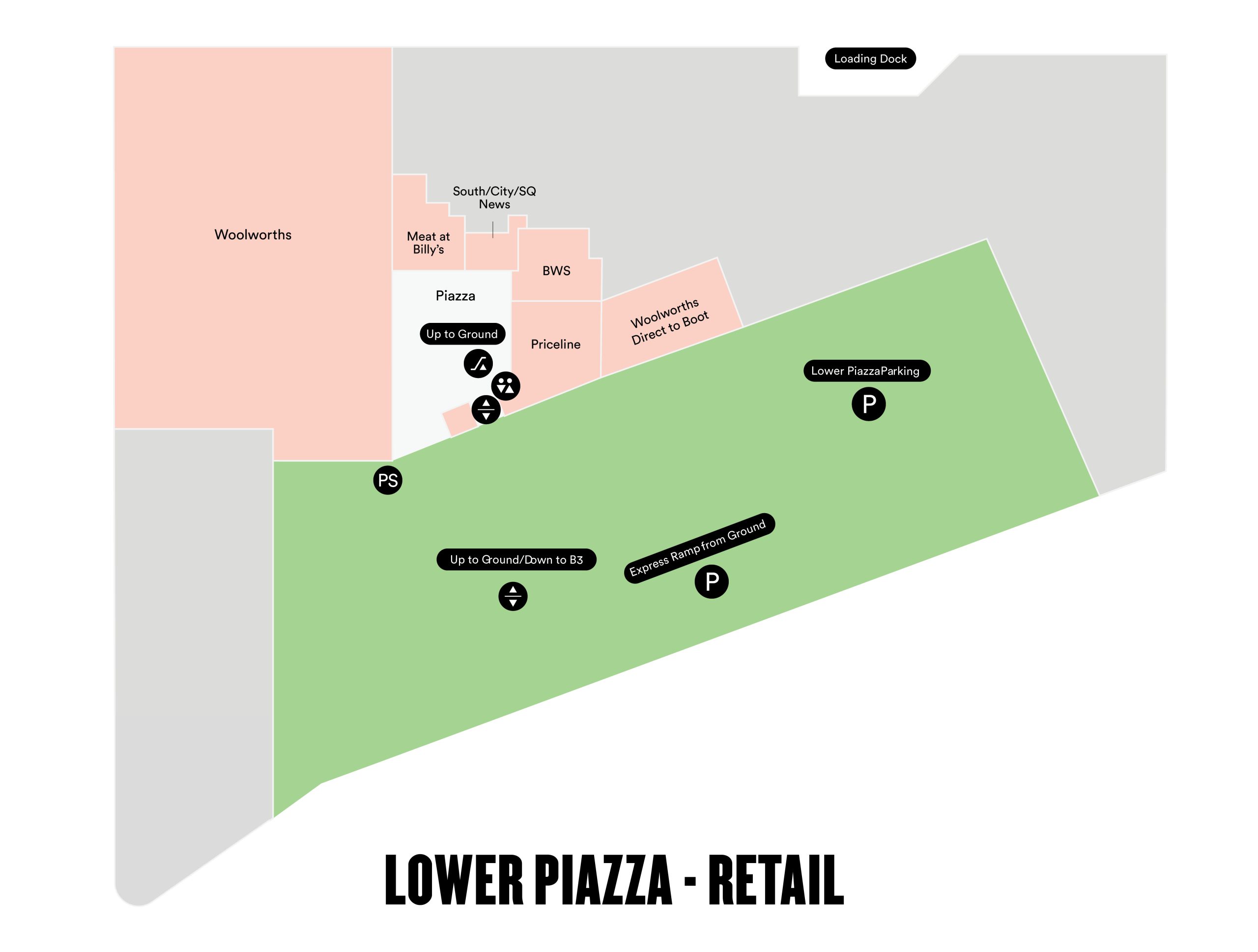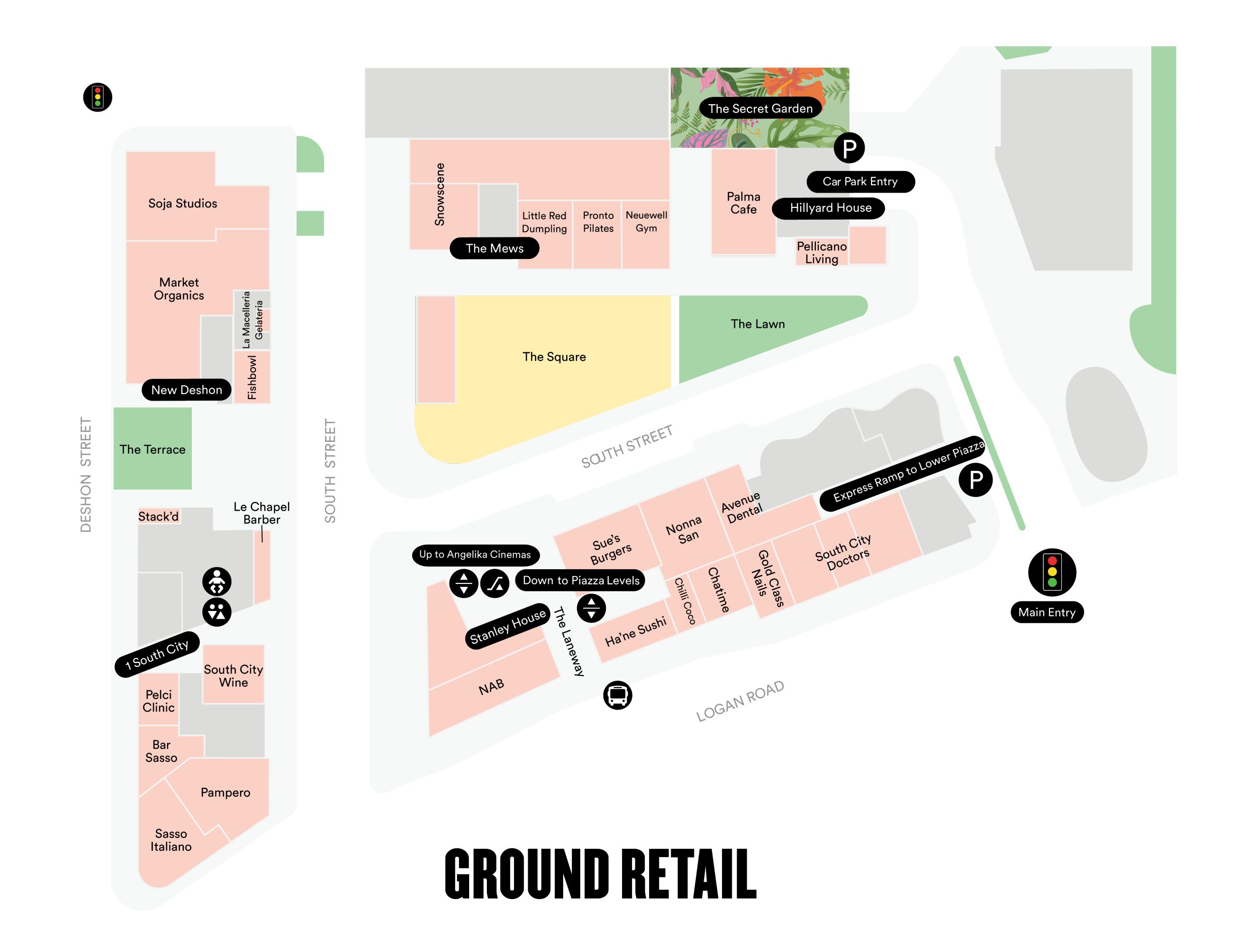 South/City/SQ is dedicated to ensuring accessibility for all visitors. Lifts, travellators and escalators are stationed around South/City/SQ to allow access to all areas of the precinct. South/City/SQ also accommodates young families during their visit. A full parents room with baby change stations can be found next to the restrooms on Upper Piazza. An additional baby change station is also available in the disabled toilet on Ground.